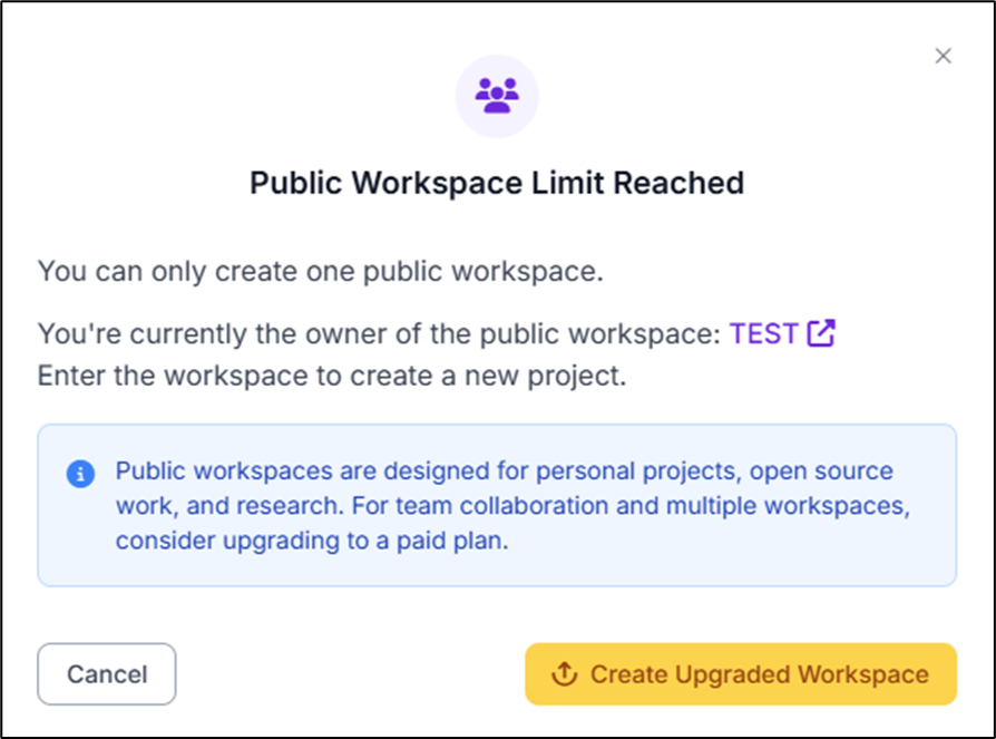 PS:免費版本僅能建立1個"Public Workspace"