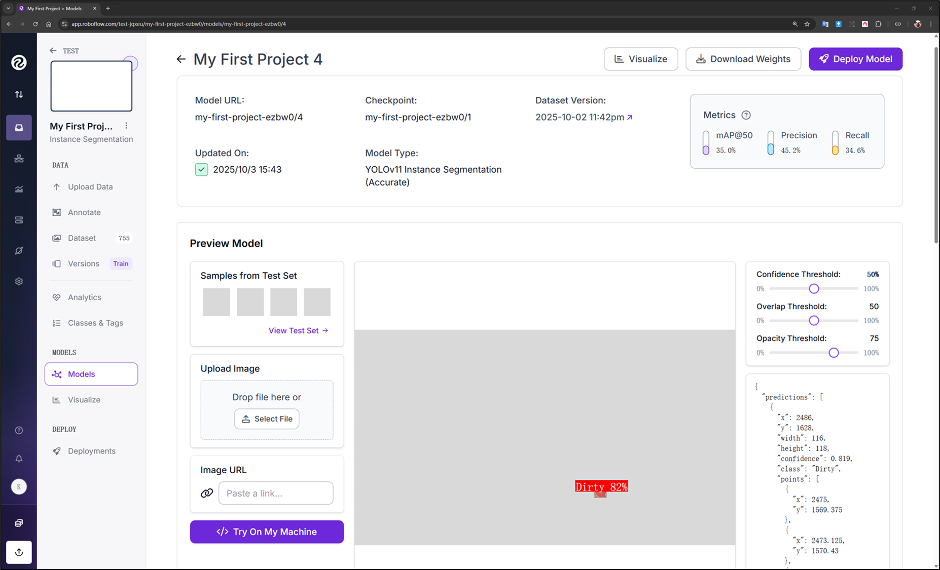 PS:若標註數據汙染或想要刪除,Roboflow支持版本回朔,每次上傳輸具都會進行紀錄,可回到"Annotate"中的"Dataset"裡,再點擊"..."進行調整即可