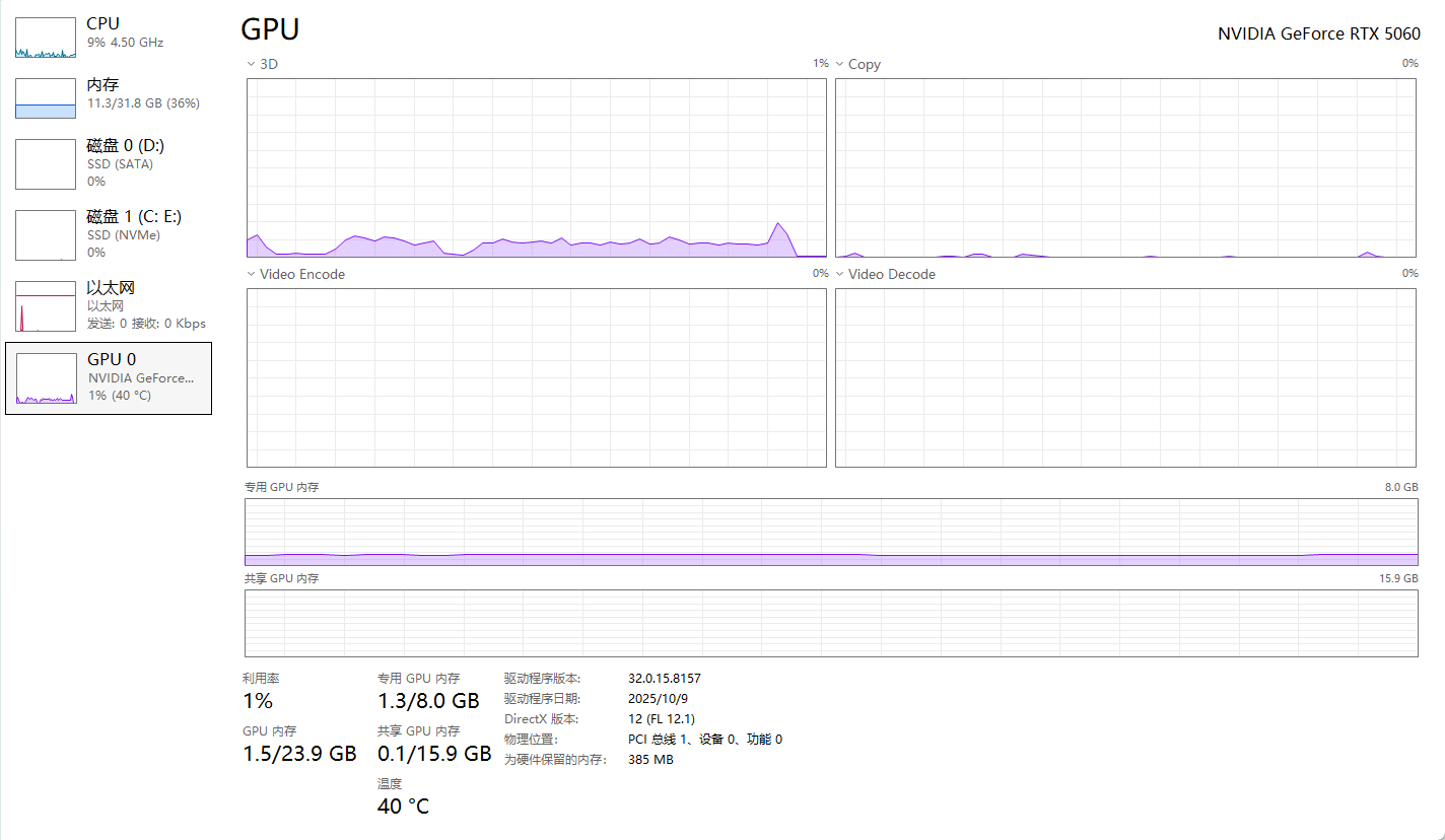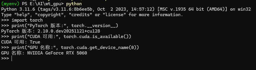 推荐安装方式(CUDA 12.8 支持)这些版本为 nightly 预览版,非稳定版,但它们是当前唯一支持 RTX 5060 的版本