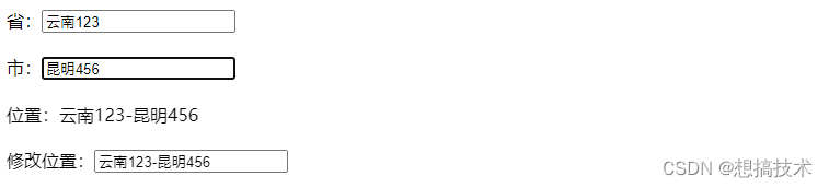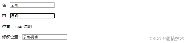 如下图修改省和市可以通过计算属性得到位置。修改省和市的时候同时位置信息也发生改变