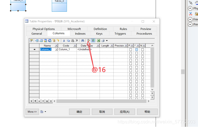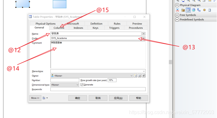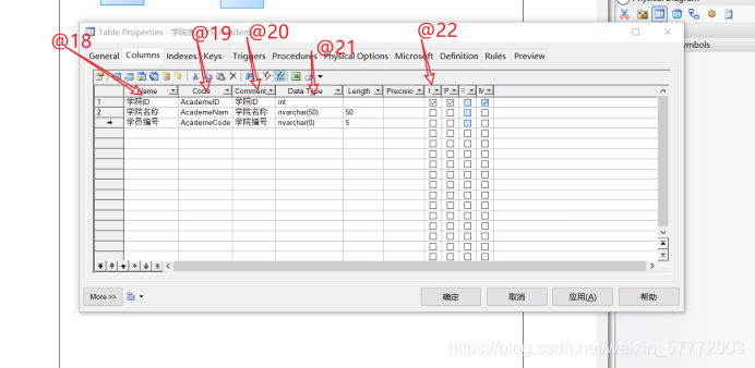@18:表每一列的名称,为PowerDesigner显示,所以一般为中文