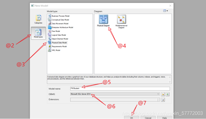 本文详细介绍了如何使用PowerDesigner工具创建物理模型,包括选择图表、设定表名、数据库连接、添加列、定义关系等步骤,适合初学者快速上手建表操作。