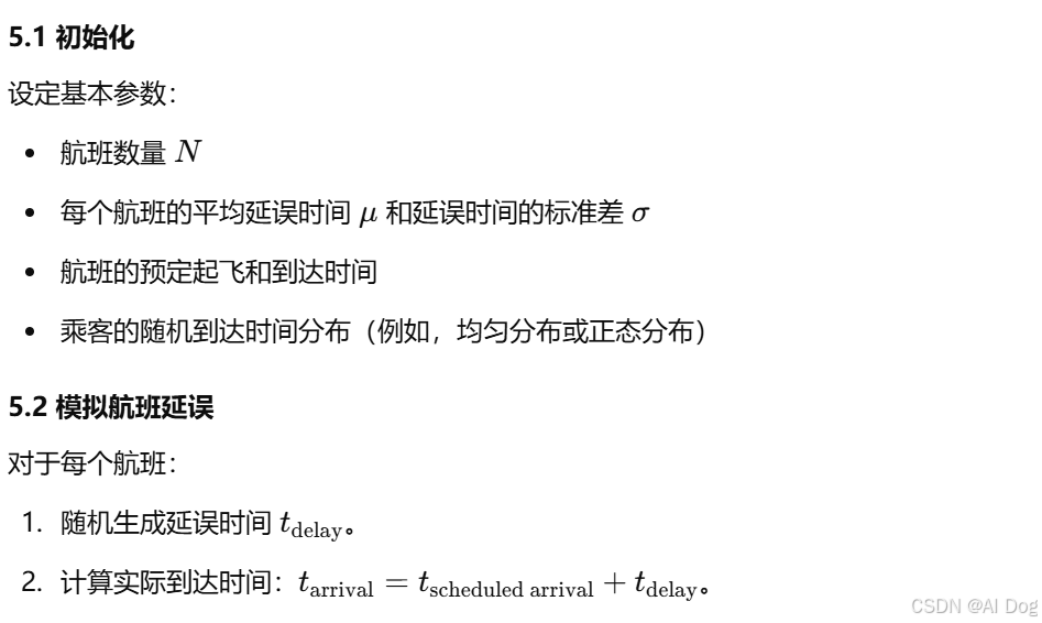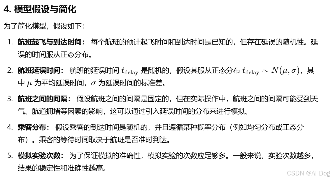 假设我们要模拟一个航班调度系统,其中包括多个航班的起降时间、乘客分布、延误概率等因素。我们的目标是通过蒙特卡洛模拟方法,分析航班延误的分布、航班的准时率、乘客的等待时间等关键性能指标,并评估不同调度策略的效果。