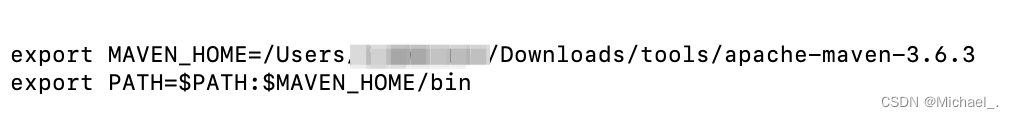 export MAVEN_HOME=/Users/个人用户名/Downloads/tools/apache-maven-3.6.3
