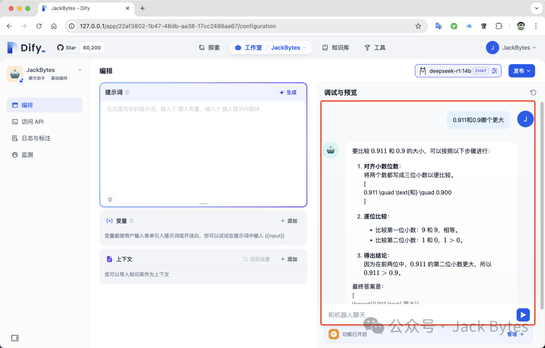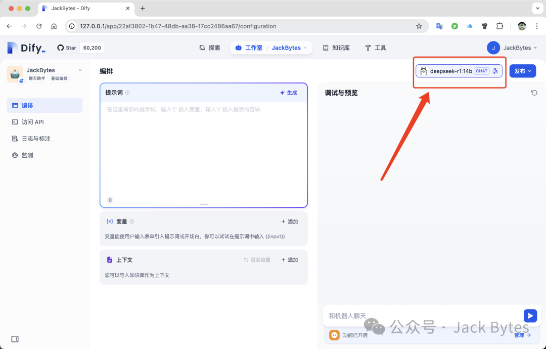 下面介绍一下在Dify中创建一个应用来使用DeepSeek R1模型。