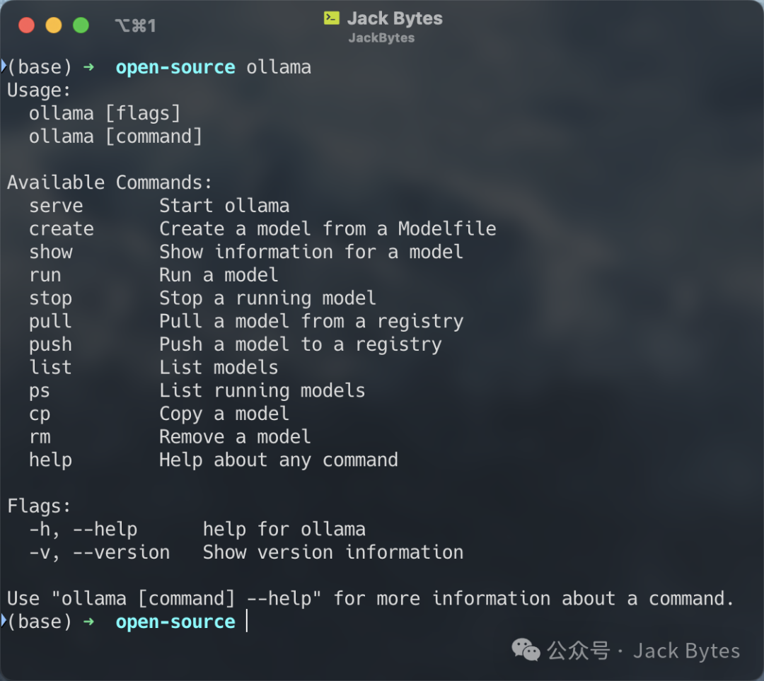 安装成功之后,在命令行输入ollama,如果出现下面的提示,则说明安装成功。