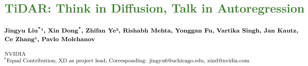 - 论文标题: TiDAR: Think in Diffusion, Talk in Autoregression