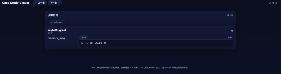 运行成功后,终端会显示访问地址。打开浏览器并输入该地址,即可进入 Case Study Viewer 界面,对结果进行交互式浏览与分析。 界面示例如下所示: