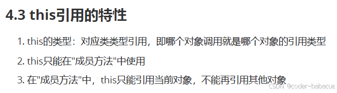 this引用指向当前对象(成员方法运行时调用该成员方法的对象),在成员方法中所有成员变量的操作,都是通过该引用去访问。