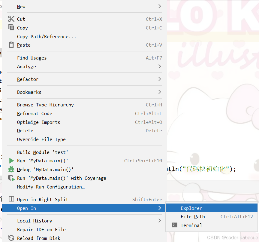 构造块:定义在类中的代码块(不加修饰符)。也叫:实例代码块。构造代码块一般用于初始化实例成员变量。执行时机是在new对象的时候,在构造方法之前