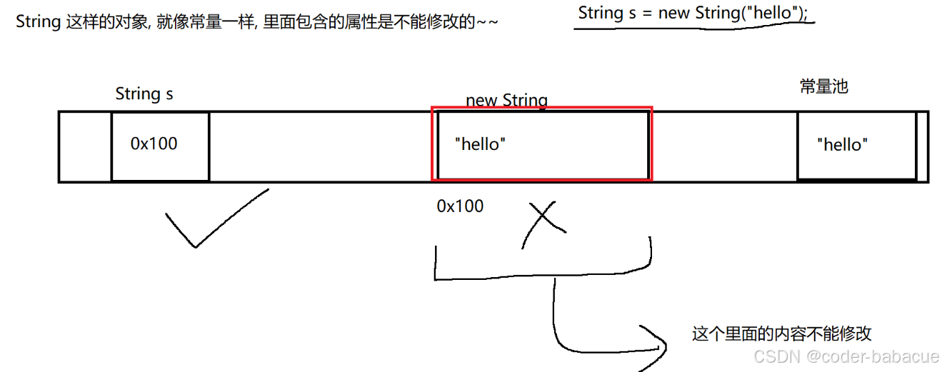 第二种new String这样的做法,就需要从操作系统这里申请内存,并且创建字符串对象。而第一种方法,字符串常量池,直接String s1 = "hello",这样的时间开销会比上面的new的方法小很多。字符串常量池,是Java内置的机制,JVM运行时就会自动进行构造,不需要程序员来关注。常量池也不仅仅是只有"字符串常量”,还有一些其他的常量池。