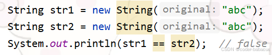 // // String 是引用类型, 使用 == 比较, 是判定两个引用保存的地址是否相同 (判定两个引用是否指向同一个对象)