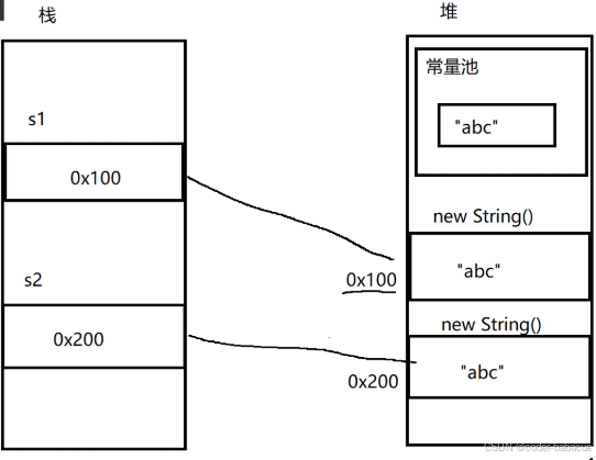 // 此时 s2 的内容也是 "hello", 但是是指向常量池中的 "hello"