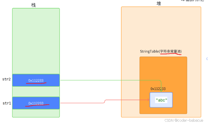 "abc”是字面值常量就会被放到JVM的字符串常量池中