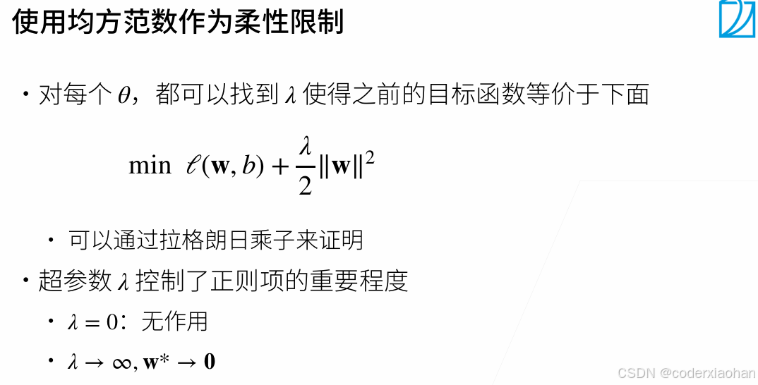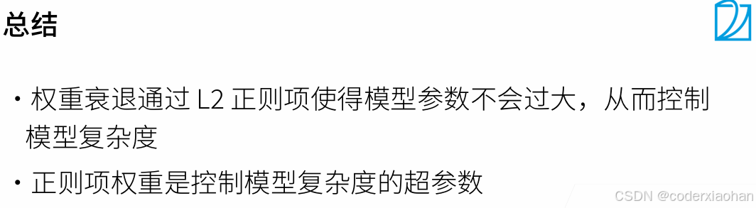 由于权重衰减在神经网络优化中很常用, 深度学习框架为了便于我们使用权重衰减, 将权重衰减集成到优化算法中,以便与任何损失函数结合使用。