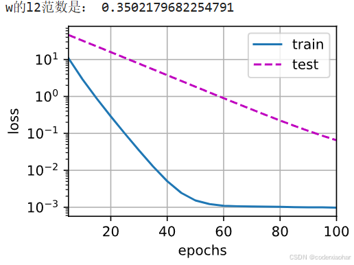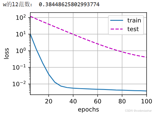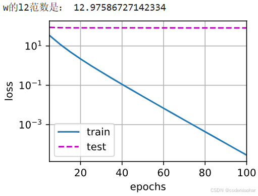 在下面的代码中,我们在实例化优化器时直接通过weight_decay指定weight decay超参数。 默认情况下,PyTorch同时衰减权重和偏移。 这里我们只为权重设置了weight_decay,所以偏置参数 不会衰减