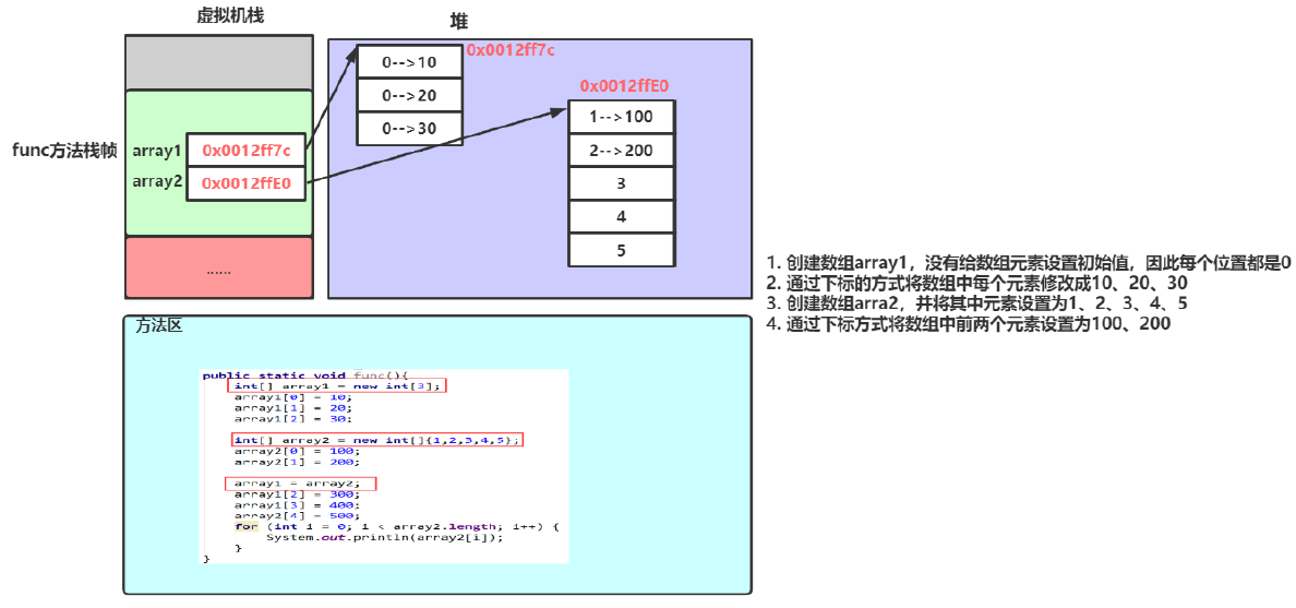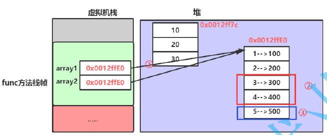 在上述代码中,a、b、arr,都是函数内部的变量,因此其空间都在方法对应的栈帧中分配。