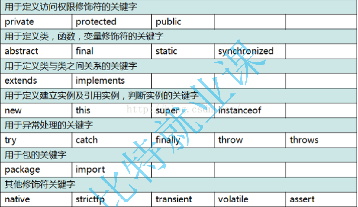 关键字是由Java语言提前定义好的,有特殊含义的标识符,或者保留字