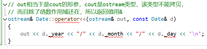 如果是函数声明在类内,会默认传一个形参this,而第一个参数默认是out,变成了d<<out