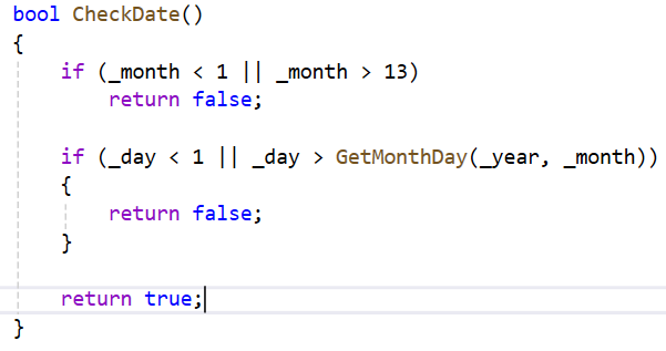 为了判断输入的日期是否正确,在日期类Date.h中添加检查函数