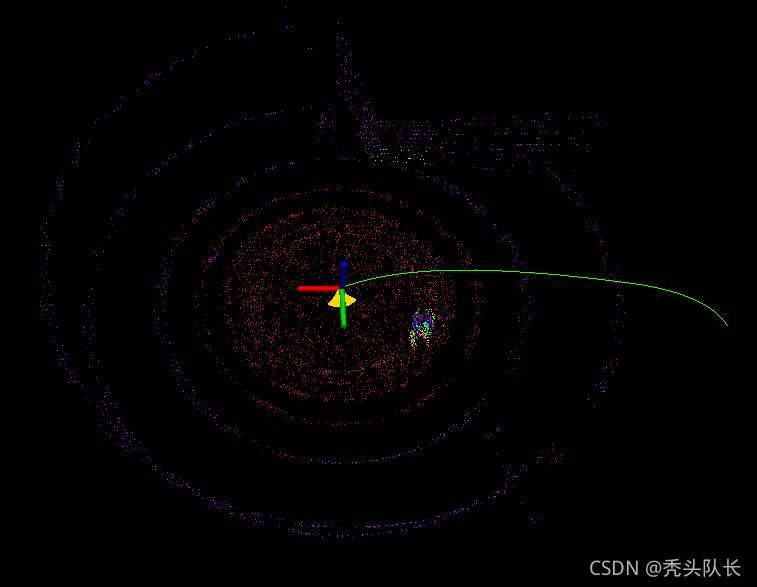 和 LocalPlanner 中一样,地形分割所接收到的点云信息同样也是在map坐标系下,因此首先要将其转换到车体坐标系下,即base_link,还包括点云的裁剪。在进行地面分割之前,做了一个点云滚动的操作。如下图所示,紫色的点云为 terrainVoxelCloud 地形,其他彩色则为分割后的结果,可发现其分割的区域并不完全是地形点云。因此猜想,这个点云滚动的操作,可能是为了同步点云和车辆的位置,毕竟点云是在map坐标下下的,比如说因为某些延迟,导致车辆与切割的点云信息存在偏差。当偏差大于 terrainVoxelSize 一个格子大小时,就通过翻滚,将车辆位置与点云位置进行配准。