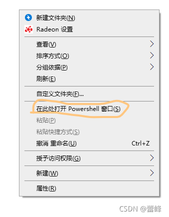 2.方法二:文件式:创建新的文件夹,在该文件下可以先建立一个新的文本档,后缀可以先为txt,在其中写入hello world!,保存后将后缀名改为.py。之后在该文件夹的空白处点击shift和右键,可发现在该地方有在此处打开Powershell窗口。点击即可。
