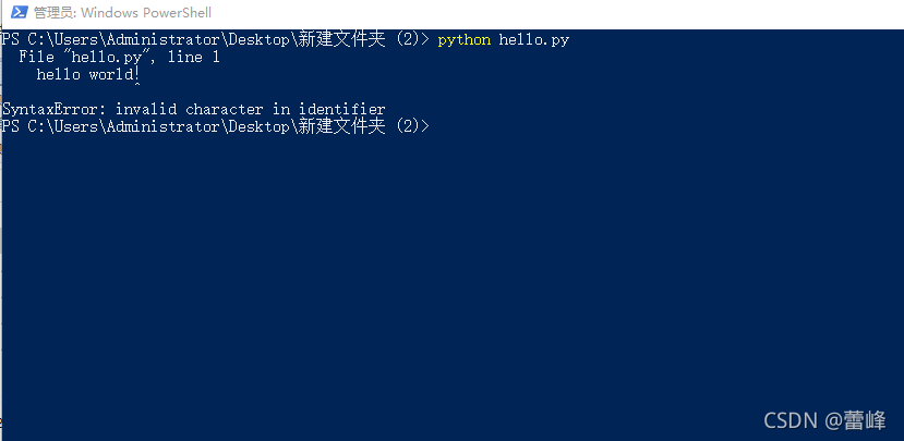 之后即进入Windows Powershell窗口后,输入python hello.py即可运行出来。
