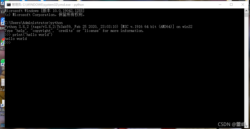 1.方法一:交互式:点击cmd,输入python后enter即可出现python的相关信息,可看到出现>>>,在这个后面编辑程序enter之后即可输出。如下所示: