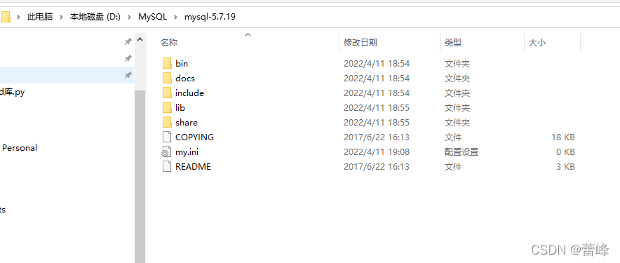 9.在该文件与bin目录同级别的地方新建my.ini配置文件。(mysql的核心配置文件)