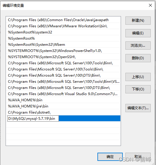 8.我们点击MySQL文件夹下面的bin目录,复制bin目录所在的地址,添加到Path变量里面即可。