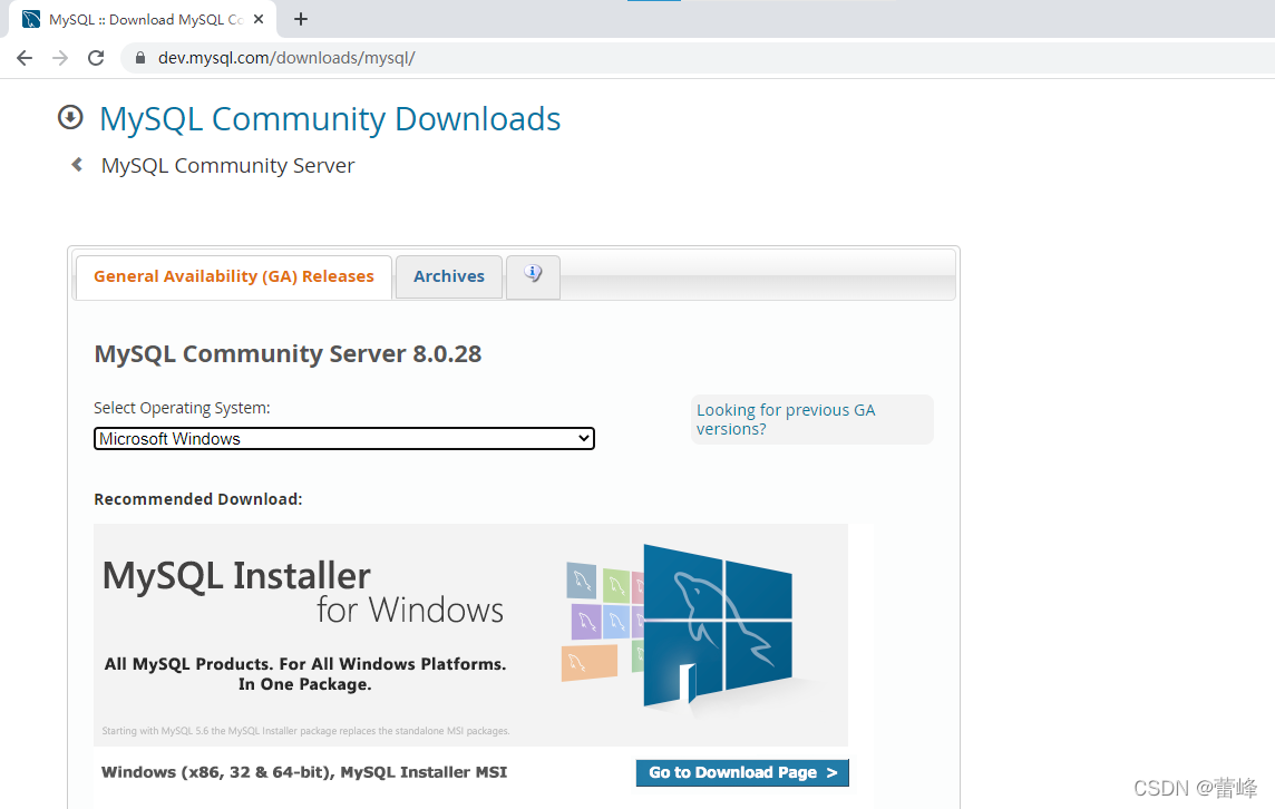 3.我们进入该页面,我们可以直接下载最新版,当然也可以下载5.7版本,一般在企业里面,大多采用5.7版本。我们这里示例下载5.7版本的。我们点击Archives,即可选择其他版本。