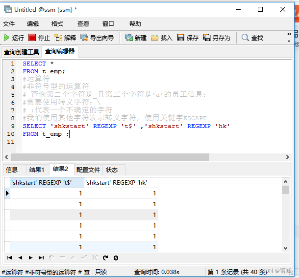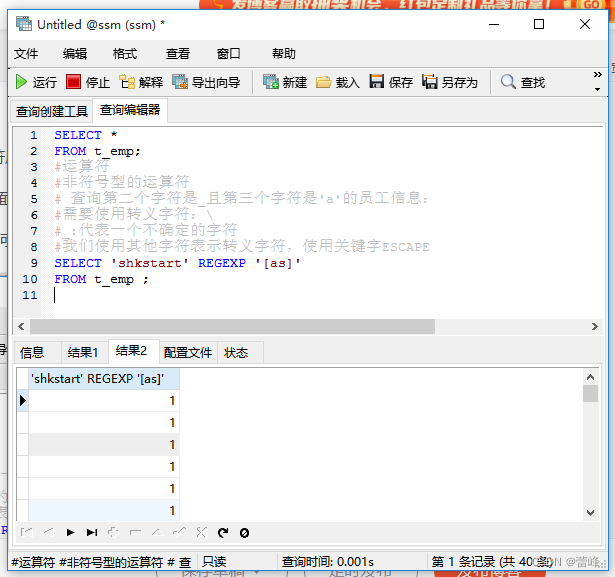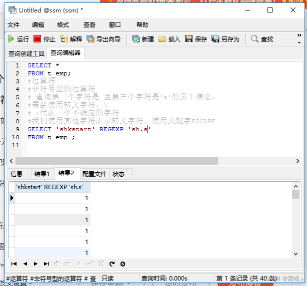expr REGEXP 匹配条件:如果expr满足匹配条件,返回1;如果不满足,则返回0.