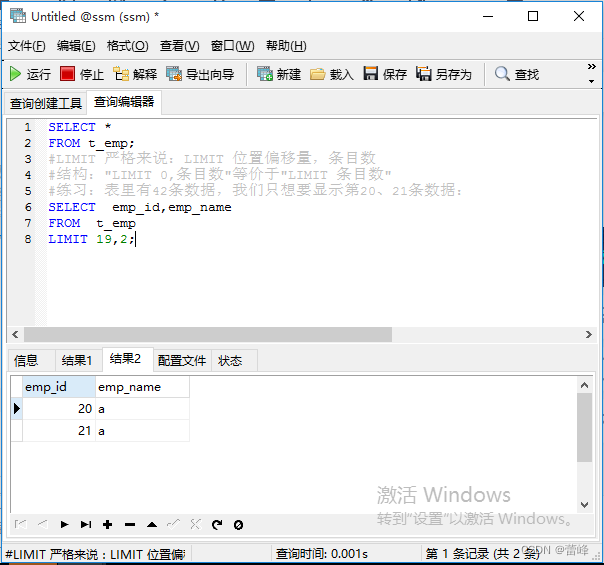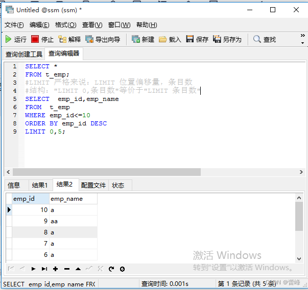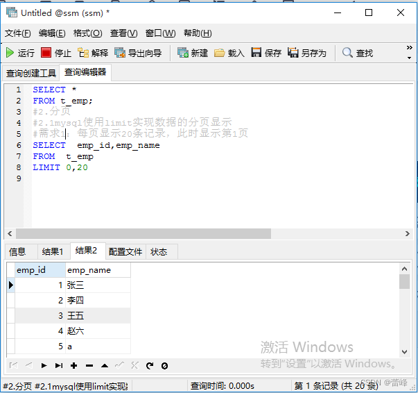 2.4LIMIT可以使用在MySQL、PGSQL、MariaDB、SQLite等数据库中使用,表示分页。