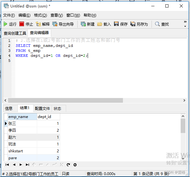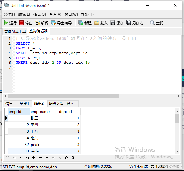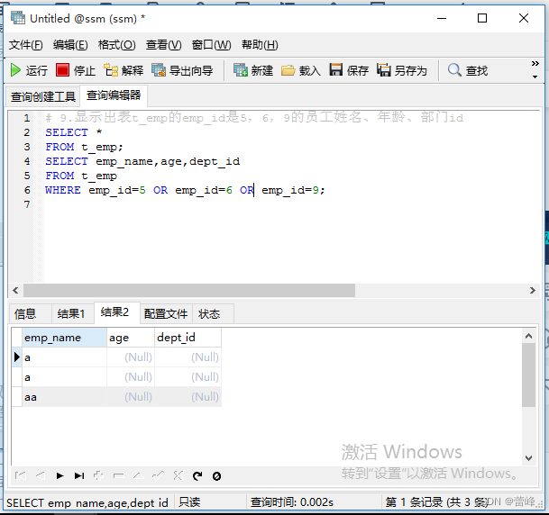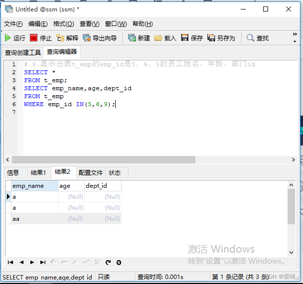 9.显示出表t_emp的emp_id是5,6,9的员工姓名、年龄、部门id