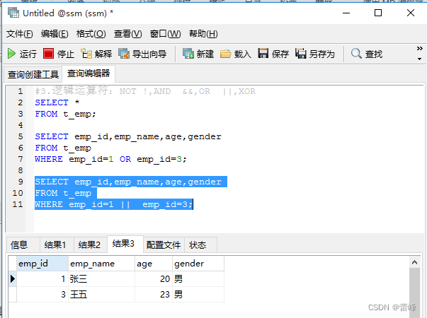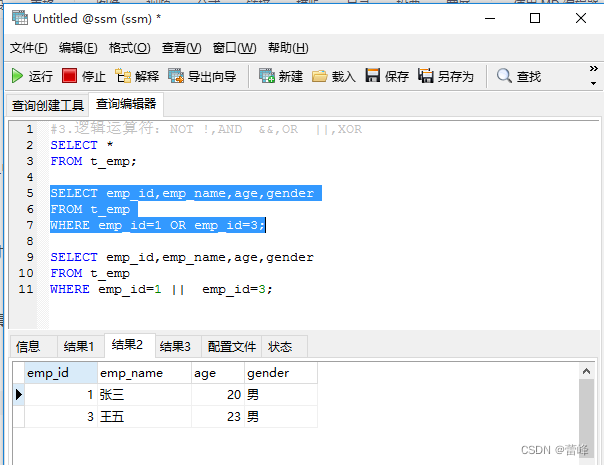 OR可以和AND一起使用,但是在使用时要注意两者的优先级,由于AND的优先级高于OR,因此先对AND两边的操作数进行操作,在与OR中的操作数进行结合。