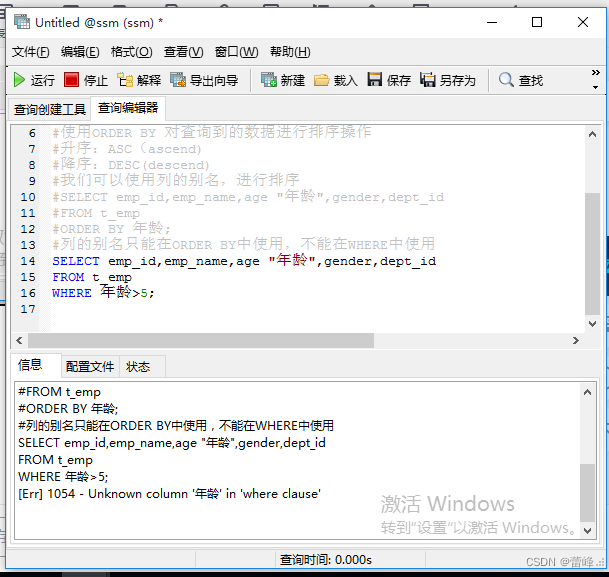 列的别名只能在ORDER BY中使用,不能在WHERE中使用
