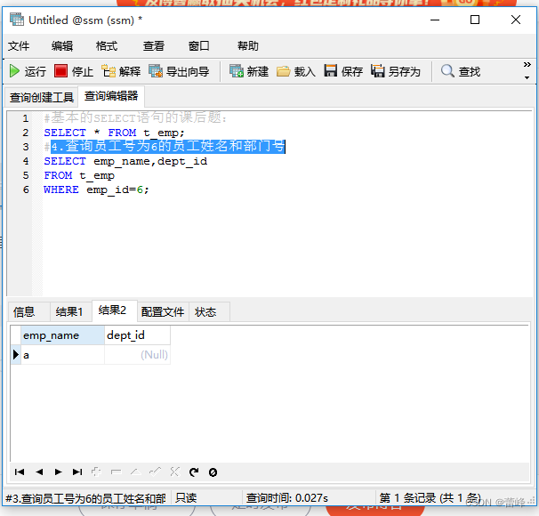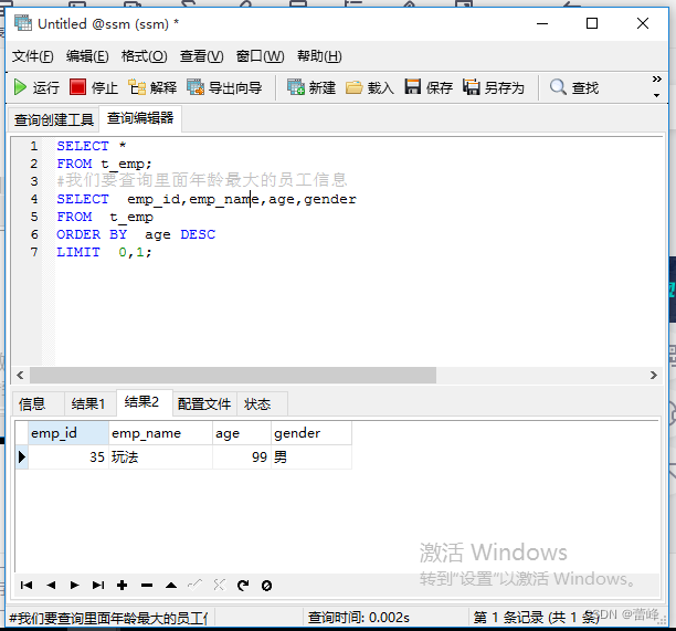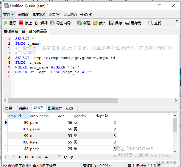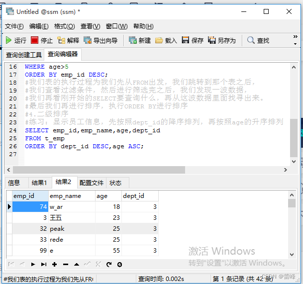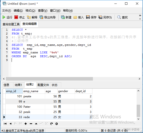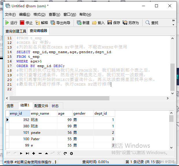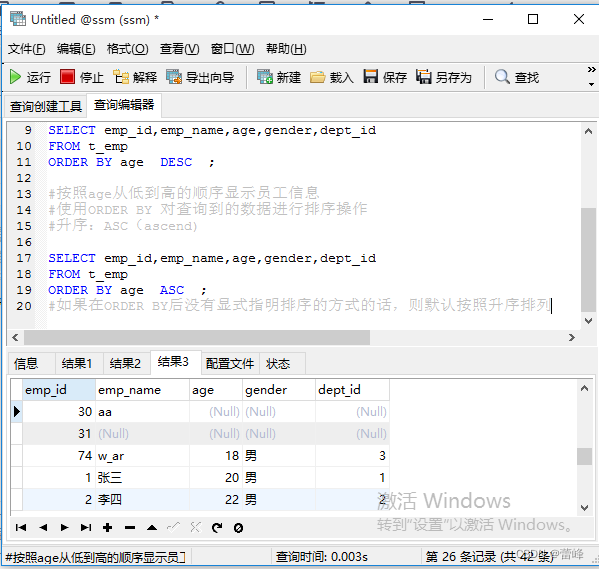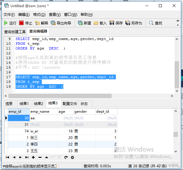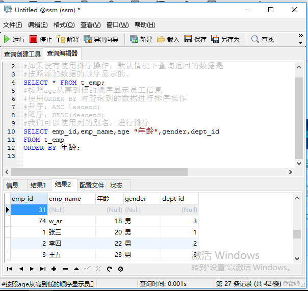 (1)使用ORDER BY 对查询到的数据进行排序操作
