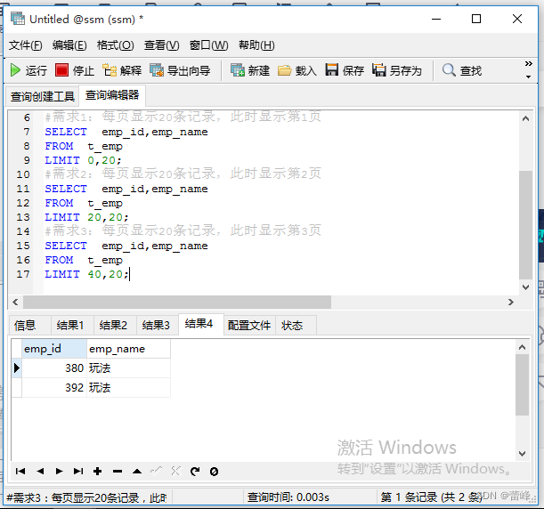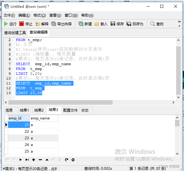 公式:LIMIT (pageNo-1)*pageSize,pageSize;