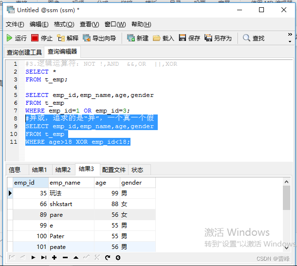 (4)XOR(逻辑异或,一个为真则全为真,全为真或全为假则为假)满足其中一个条件但是不满足另一个条件