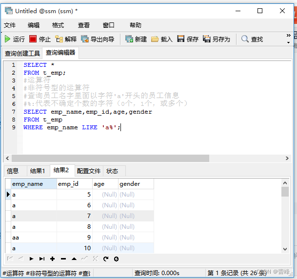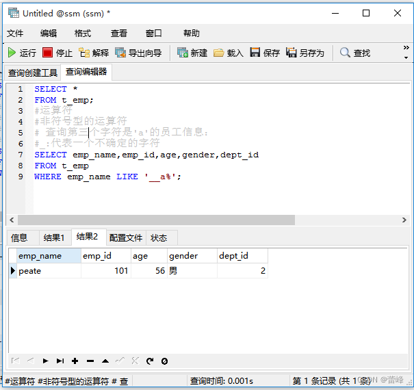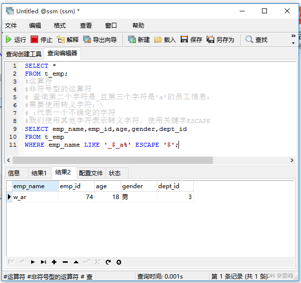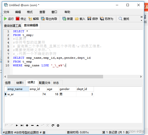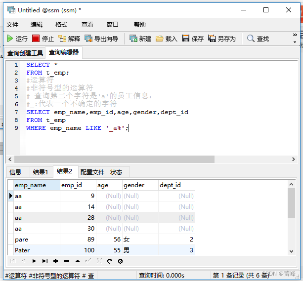 (5) LIKE:是否符合模糊匹配规则(模糊查询)