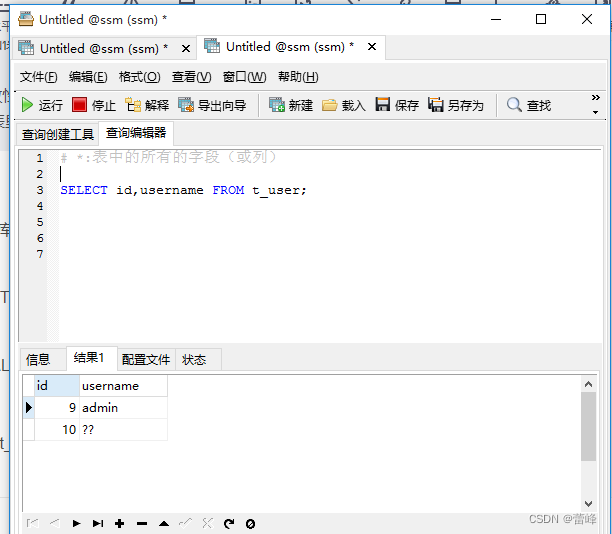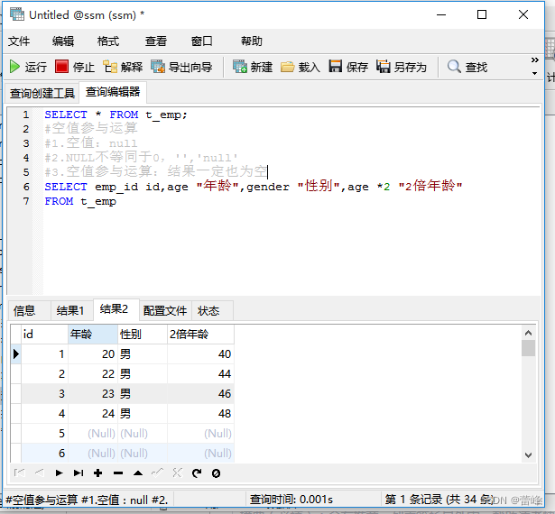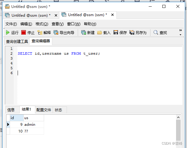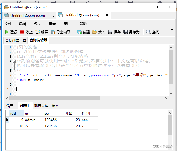 SELECT id iidd,username AS us ,password "pw",age "年龄",gender "性 别"