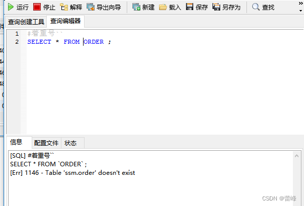5.必须保证你的字段没有和保留字、数据库系统或常用方法冲突。如果坚持使用,在SQL语句中使用'(着重号)引起来