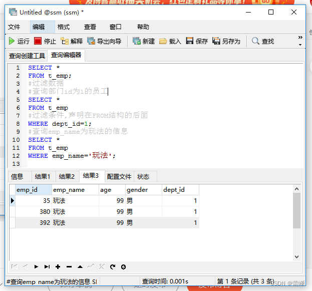 如果我们没有使用这句话,我们在查询过程中,换个数据库进行查询的时候会出现: