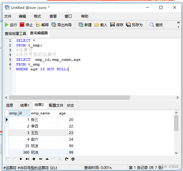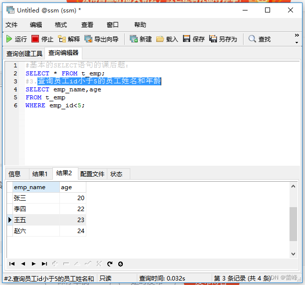 (3) 强调格式:WHERE需要声明在FROM后,ORDER BY之前。