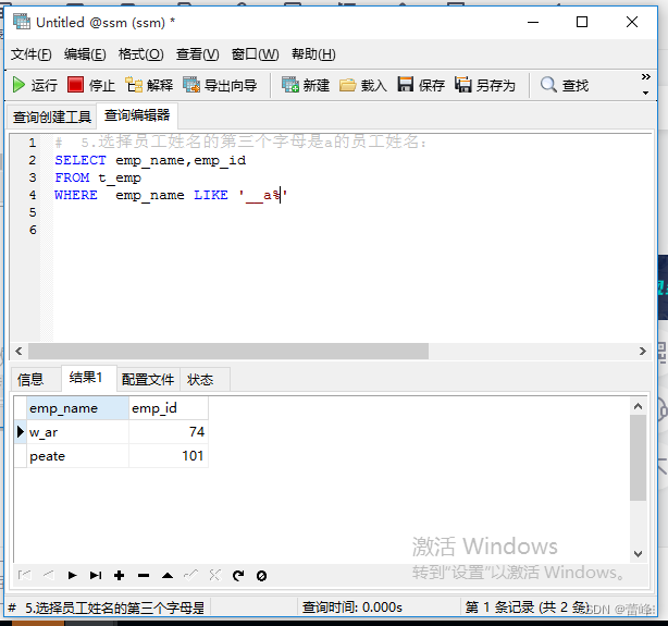 5.选择员工姓名的第三个字母是a的员工姓名: