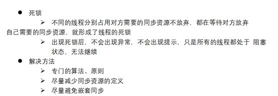 死锁 : 就是大家在执行过程中,都遇到了对方进入加锁的方法,从而导致都访问不了的状态