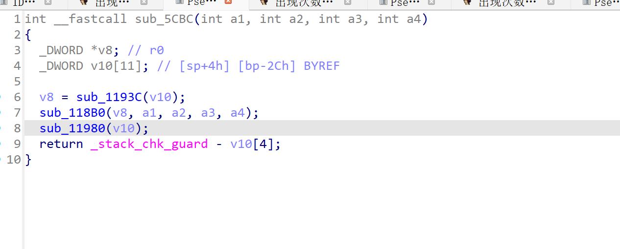return _stack_chk_guard - v13[2]; // 步骤10:栈溢出保护(和加密无关)