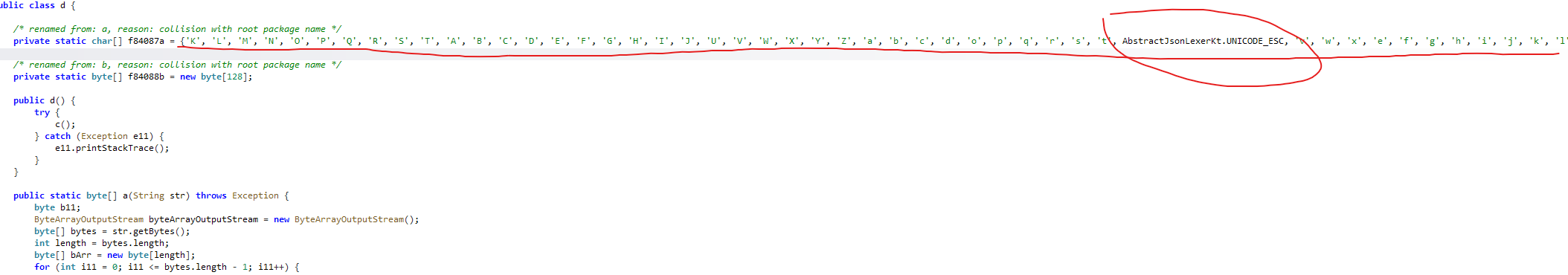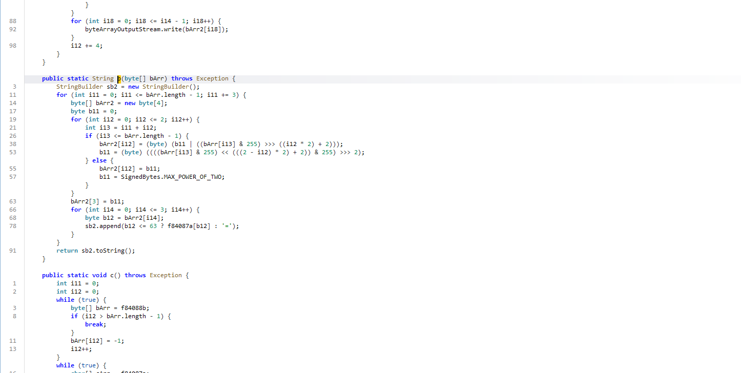 3调用工具类d的静态方法b(),对字节数组执行「自定义的 MODIFIED_BASE64 编码」