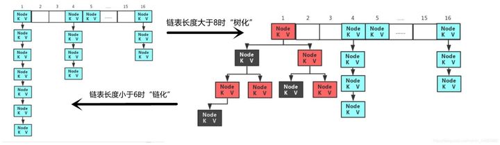 这里就涉及到了一个链表中数据存储时,进行“树化”和“链化”的一个过程,那么什么是“树化”和“链化”呢?