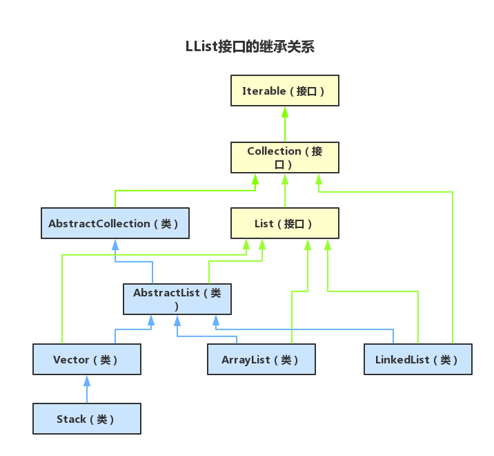 先来看List接口,关于List接口我在之前也和大家提到过,它是继承于Collection接口的,是Collection接口的子接口,只是用于对数据的单列存储。继承关系如下图: